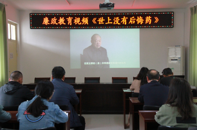 為進一步提高黨員干部廉潔自律意識和紀律觀念,筑牢拒腐防變的思想和道德防線, 5月8日下午三點三十分在昌通路橋三樓會議室組織全體黨員干部集中觀看了反腐倡廉警示教育片《世上沒有后悔藥--盧氏縣委書記王戰(zhàn)方的懺悔與警示》。