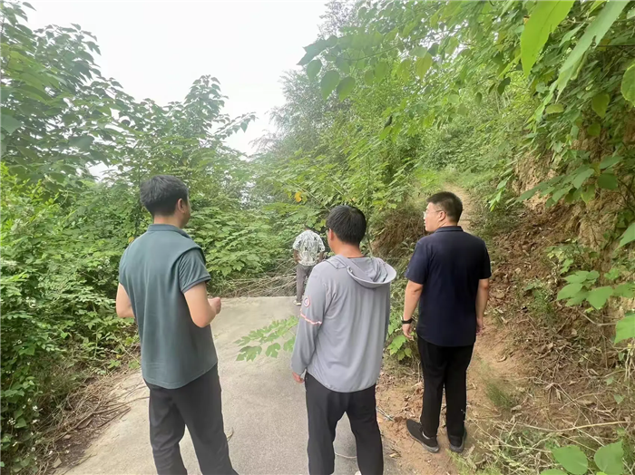 8月16日,310項目公司副總經(jīng)理黃濤、后期辦部長邵力子,靈寶指揮部、東上村村支書趙侃民前往施工現(xiàn)場協(xié)調(diào)k910+900水毀進場問題,并查看相關(guān)水毀點情況。